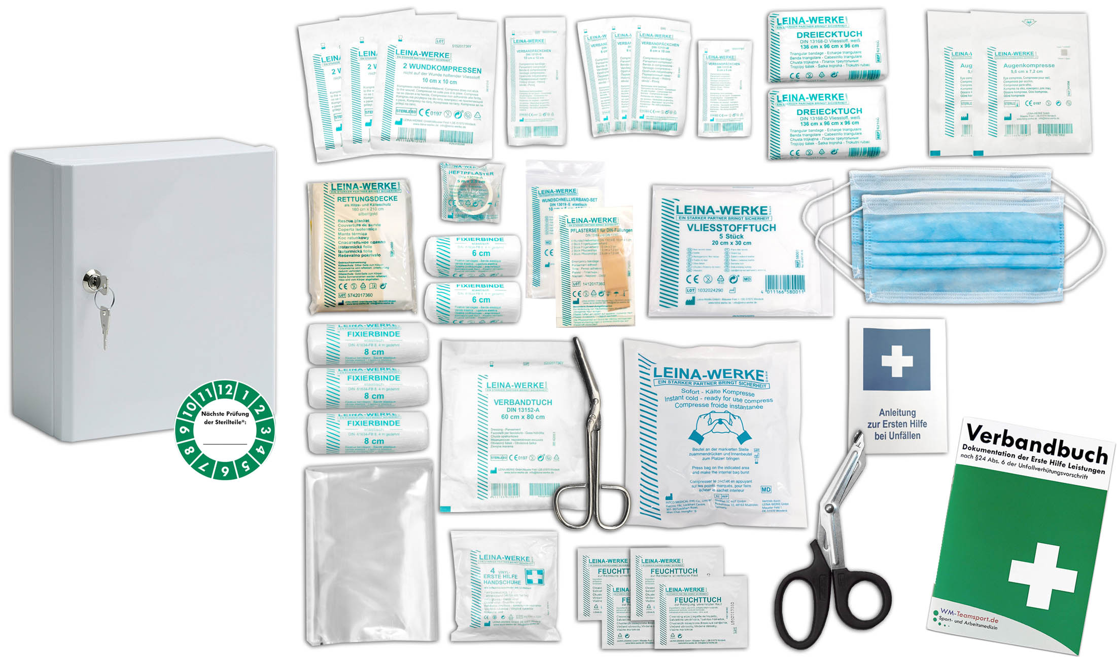 Verbandschrank A gefüllt mit dem Inhalt nach der aktuellen DIN/EN 13157