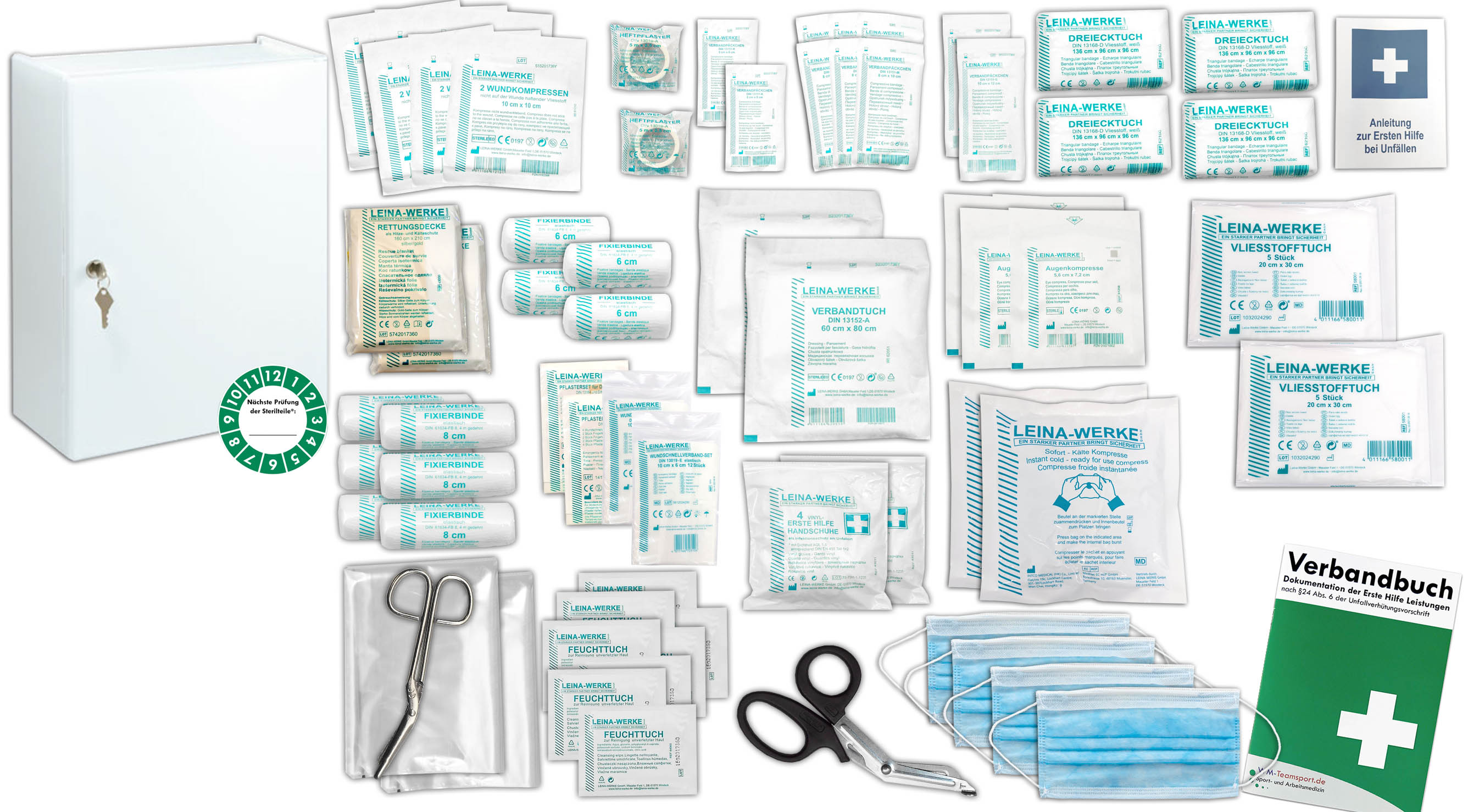 NEU: inkl. praktischer Prüfplakette auf der Vorderseite des Schrankes -> schnelle Ersichtlichkeit über das Verfalldatum der Sterilteile nach DIN 13157 -> in kleiner Einstecktasche für ein unkompliziertes Erneuern nach einem Verbandmaterialwechsel -> Keine lästigen Kleberückstände
